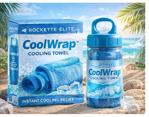 CoolWrap™ Cooling Towel Label uses advanced fabric technology to provide instant cooling when wet, making it ideal for athletes and outdoor use.